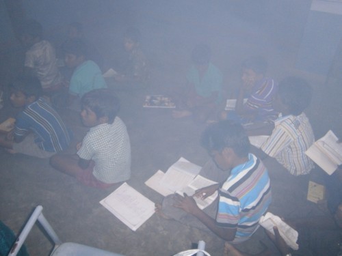 Šajā un iepriekšējā foto baznīcā redzamie dūmi nav no mums zināmā vīraka kvēpināšanas, ko vairākas draudzes arī Latvijā praktizē, bet gan nepieciešamība – nīmkoka lapu dedzināšana metāla traukā, lai dūmi aizbaidītu moskītus. Kaut arī šeit šobrīd ir ziema un skaitās sausā sezona, tomēr „lidoņu” ir pietiekoši daudz.